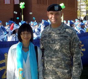 Le commandant de base Steven Smith avec une pratiquante de Falun Gong