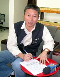 L’o rateur Yu Cheng-da du Conseil du comté de Chiyi signe la pétition soutenant une enquête sur l'interruption du signal de diffusion de NTDTV.