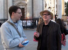 Lors d'une précédente activité à St Martin's Square récemment, le pratiquant avait parlé à cet homme qui avait dit "Je sais qu'ils persécutent aussi les membres de l'église chrétienne clandestine. Il a dit cette fois-ci "Plus de gens connaîtront la vérité, plus la persécution diminuera jusqu'à ce qu'elle cesse." L'homme est parti avec un DVD des Neuf commentaires sur le Parti communiste et un VDC de présentation de Falun Dafa, disant qu'il les regarderait lorsqu'il serait rentré chez lui.