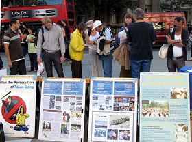 Le 12 septembre 2009 était un samedi, les pratiquants de Falun Gong se sont une fois de plus rendus à St Martin's Square au centre de Londres pour une activité de clarification des faits face à face, donnant à connaître la bonté du Falun Gong tout en dénonçant sa persécution brutale par le PCC. De nombreuses personnes ont condamné la brutalité du PCC et manifesté leur soutien au Falun Gong dans sa résistance à la persécution.