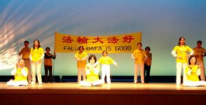 Les pratiquants présentent les exercices du Falun Gong sur la scène au Festival culturel lichan