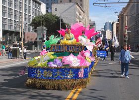 Le défilé a commencé à 11h du matin. Plus de 90 groupes y participaient. La section du Falun Gong consistait en la Fanfare Tian Guo (pays céleste) une démonstration des exercices et un char. Leur prestation été chaleureusement applaudie.