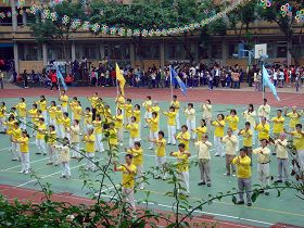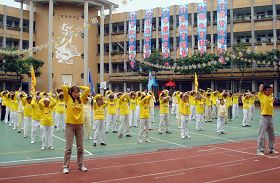 Le 14 novembre 2009, est le 32ème anniversaire de l'Ecole élémentaire Wanda à Taipei. Le principal, M. Tseng,a souvent vu des pratiquants de Falun Gong locaux pratiquer les exercices dans un parc voisin. L'atmosphère paisible les entourant lui a laissé une profonde impression et il a invité les pratiquants à faire une démonstration pour la fête anniversaire de l'école.