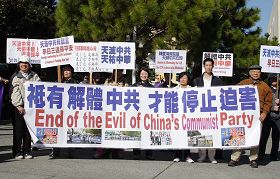 Les participants ont déployé de nombreuses banderoles lors du rassemblement. Dix personnes ont fait des discours, condamnant le comportement pervers du PCC et invitant les Chinois à reconnaître la nature du PCC.