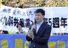 Dr Ma Youzhi, un représentant du Bureau pour démissionner du Parti de San Francisco, a exprimé dans son discours que depuis les Neuf commentaires sur le parti communiste ont été publiés, il y a cinq ans, 63.5 millions de Chinois ont renoncé au parti. Il a dit que le Mur de Berlin a tombé, il y a 20 ans, mais que le PCC essaie de construire un mur dans le cœur des gens. Il a dit que les Neuf commentaires sont l’outil pour faire tomber le mur dans le cœur des gens.
