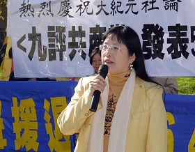 Zhang Hong, une pratiquante du Falun Gong a dit dans son discours que de nombreuses personnes qui ont lu les Neuf commentaires veulent renoncer au parti. Elle a, une fois, aidé plus de 20 personnes dans un groupe de touristes à San Francisco à renoncer au parti, dont un officier haut rang du PCC. Elle a dit que cela démontre que de nombreux Chinois se réveillent et abandonnent le PCC.