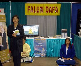Les pratiquants ont également renseigné les gens sur la persécution des pratiquants de Falun Gong en Chine. Quand les gens ont appris qu'il y avait deux pratiquants sur le stand qui avaient été physiquement maltraités lors de leur emprisonnement en Chine, ils avaient de la difficulté à relier ces deux choses. Les gens ont demandé : « Vous êtes si paisibles. Pourquoi vous ont-ils emprisonnés et maltraités ? » Certains se sont arrêtés au stand et ont regardé tranquillement la présentation des exercices à distance. Après un moment, quelques-uns sont venus vers nos pratiquants et ont dit qu'ils savaient ce qui se passe en Chine et qu'ils sont heureux de voir le Falun Dafa au salon de la santé.