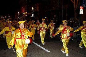 Le 4 décembre 2009, des pratiquants de Falun Gong ont participé au défilé annuel de Noël à Philadelphie. Plus de 90 groupes ont joué dans le défilé. Le groupe des tambourins à la ceinture, composé de pratiquant de Falun Gong, était le seul groupe chinois.