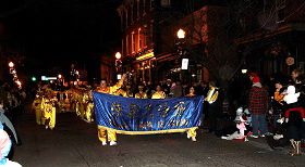 Le défilé a commencé à 20h30 et faisait 1,6 km de long. Les tambourins à la ceinture des pratiquants ont beaucoup attiré l’attention. Les pratiquants ont aussi distribué des dépliants aux spectateurs tout le long du défilé.