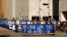 Plus de 400.000 personnes ont regardé le défilé sur le site et près de deux millions de téléspectateurs ont suivi la couverture [de l'évènement] en direct à la télévision. Le groupe du Falun Gong était le seul groupe chinois au défilé. Il se composait de la Fanfare de la terre divine et d'une équipe de présentation des exercices du Falun Gong.