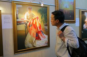 Un autre artiste chinois semblait avoir le cœur lourd après avoir étudié chaque œuvre d'art de l'exposition. Il a dit que les peintures révèlent la persécution d’une façon très convaincante. Il a été particulièrement ému par Les larmes d’une enfant. Il s'est tenu devant l’œuvre pendant longtemps avec les larmes aux yeux.