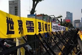 Liberty Times rapportait le 23 décembre: ‘’Parmi tous les groupes de manifestants, Falun Gong est celui qui attire le plus l’attention. Ils ont commencé une protestation assise et à lever des bannières avec les mots : ’Cessez de persécuter Falun Gong’, le 20 décembre et ont continué pendant 24 heures. Excepté des cris de protestations, ils sont restés calmes. Leur persévérance et leur discipline ont été admirées par la police sur place.’’