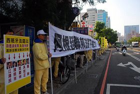 Le fonctionnaire du Parti communiste chinois (PCC) Chen Yunlin, a visité Taiwan à la tête d'une délégation le 20 décembre 2009. Les pratiquants de Falun Gong ont organisé des activités afin de protester contre la persécution de la pratique par le PCC. Ils ont tenu des bannières le long de la route, du matin jusqu’au soir et appelé à la fin de la persécution par le PCC.