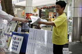 Les bénévoles ont également mis en place quatre stands pour aider les chinois à renoncer au parti. Ils ont expliqué aux gens pourquoi renoncer au parti est une décision importante pour chaque individu. Les bénévoles ont distribué un grand nombre de documents de clarification de la vérité et ont convaincu un certain nombre de chinois à renoncer au parti.