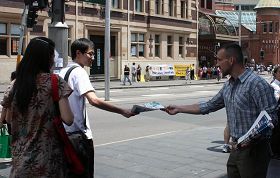 Les bénévoles du Bureau pour démissionner du Parti dans le Queensland ont organisé un rassemblement à Sunnybank, une banlieue de Brisbane. Madame Zhao du Bureau des démissions, a dit que l’un des buts du rassemblement était de faire connaître au public les violations graves des droits de l’homme qui ont lieu en Chine où les pratiquants de Falun Gong, les chrétiens et autres groupes sont persécutés en raison de leur croyance. L’autre objectif du rassemblement est de soutenir les chinois qui ont publiquement renoncé au parti et à ses organisations affiliées.