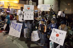 Lorsque le contingent du Falun Gong est passé, les spectateurs sur le trajet du défilé les ont chaleureusement applaudis et acclamés. Des occidentaux dans la foule tenaient des pancartes où on lisait "Falun Dafa est bon" en chinois, "Nous aimons Shen Yun" en anglais, avec un cœur rouge, et "Vous brillez ici" en anglais avec un dessin du soleil. Certains spectateurs ont fait le geste de Heshi (mains jointes devant la poitrine) pour saluer Falun Dafa.