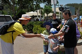 Les spectateurs prennent des dépliants