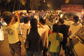 Le 9 février 2009 était le jour du Festival des Lanternes (le 15 janvier du calendrier lunaire) Les habitants se sont rassemblés à Bright Eight au Port de Kelang et célébré ce jour avec des lanternes traditionnelles, des oranges, des feux d'artifices. Composée de pratiquants de Falun Dafa, la Fanfare Tian Guo (Ndt : Pays céleste) a fait ses débuts à cette occasion à la grande surprise des habitants.