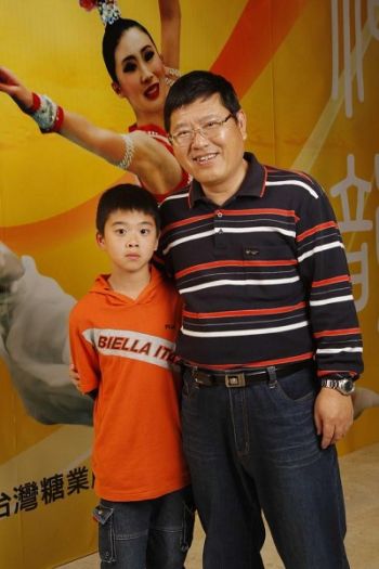 Lin Jinpeng, président de l’Université de technologie médicale de Chung Hwa emmène son fils au Spectacle de Divine Performing Arts. (The Epoch Times)