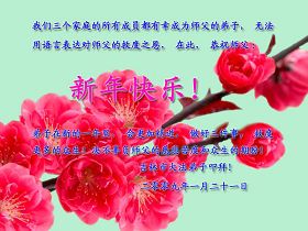 Trois pratiquants d’une famille dans la région du centre ville de la ville de Jinan souhaitent respectueusement au Maître vénéré un joyeux Nouvel an chinois !