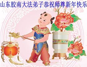 Les pratiquants de Lingqing, province du Shandong, souhaitent respectueusement au Maître vénéré un joyeux Nouvel an chinois !
