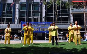 Les pratiquants ont fait la démonstration des exercices du Falun Gong et offert un spectacle sur la Place de l'hôtel de ville l'après-midi. Des centaines de personnes les ont regardés et applaudis.