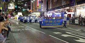 La Fanfare de la terre divine, composée de pratiquants de Falun Gong de la localité, vêtus de costumes traditionnels chinois, ont également joué dans le défilé. Un char décoré avec des fleurs de lotus ont suivi le groupe. Tous les deux ont été chaleureusement accueillis par les spectateurs.