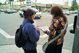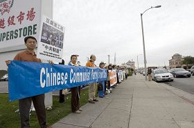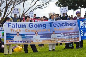 Après le rassemblement, les participants ont formé un « Grand mur de la vérité » avec des banderoles et des pancartes le long des rues de Monterey et de San Gabriel, une autre ville où vivent de nombreux Chinois, attirant de nombreuses personnes en voiture qui faisaient leurs courses au centre commercial chinois durant la fin de semaine. |