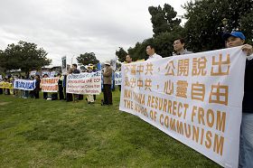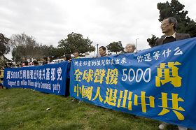Afin de célébrer les 50 millions de Chinois qui ont démissionné du Parti communiste chinois (PCC) et de ses organismes affiliés (« Les trois retraits »), et demander de l’aide pour sauver l’avocat Gao Zhisheng, des centaines de personnes en provenance de Californie ont organisé un rassemblement dans la matinée du 22 février 2009, dans le parc Barnes à Monterey dans la région de Los Angeles.