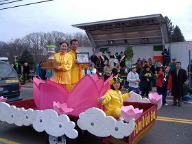 Le groupe du Falun Gong gagne le premier prix et le prix du meilleur char allégorique au défilé de la St. Patrick tenu au Miller Place Rocket Point.