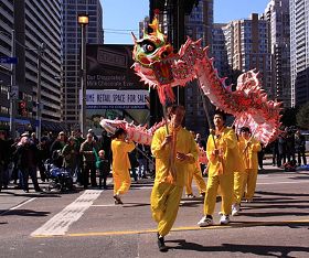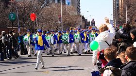À midi, des deux côtés de la rue Bloor, dans le centre-ville de Toronto, une foule dense attendait le début du défilé de la St Patrick. Soixante-douze groupes ont participé. La Fanfare de la Terre divine et la Troupe de la Danse du Dragon, composés de plus de 150 pratiquants de Falun Gong, clôturaient la procession du défilé. Jack Fern, une personne en charge de l’organisation du défilé, a dit : « Ils sont le seul groupe chinois prenant part au défilé. Leur représentation a été fantastique. J’espère qu’ils reviendront l’année prochaine. »