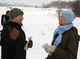 Des Suédois apprennent les faits de la persécution en lisant l'information exposée. |