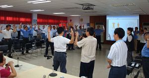 Le 26 février 2009, la Compagnie d’électricité de Taiwan succursale sud a organisé un atelier au Centre Tonghin pour présenter les exercices du Falun Gong aux employés.