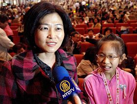 Le Général à la retraite Du, sa femme madame Chang et leur amie ont regardé ensemble le spectacle de la DPA. Madame Chang, qui enseigne la peinture, a dit au journaliste que le spectacle de la DPA l’a introduit dans un monde de divinités. C’était comme un royaume ! Elle a été émue par tous les mouvements de la danse ! Elle a dit que le spectacle de la DPA était un merveilleux divertissement pour l’âme ! C’est au-delà du monde humain. C’est la beauté du ciel.