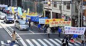 Le Bureau pour démissionner du Parti communiste chinois (PCC) du Japon a organisé un défilé à Tokyo le 29 mars 2009, en soutien aux 52 millions de chinois courageux qui ont renoncé au PCC et à ses organisations affiliées. Ils ont également condamné la persécution du Falun Gong, et ont demandé l’expulsion de Li Changchun, membre du comité permanent du Politburo du PCC, qui est arrivé au Japon le jour même.