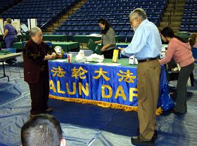 À 16 h 00, l’exposition s’est terminée et les stands ont commencé à être démontés et emballés. Devant le stand du Falun Gong, un homme dont le nom est Abdul Majid était réticent à partir. Il a lu attentivement les informations sur le Falun Gong et à écoulé la présentation. Quand il a vu Madame Lin, il lui a demandé : « Quel âge avez-vous ? Est-ce que vous le pratiquez ? » Quand il a su que Madame Lin était âgée de 80 ans et qu’elle pratiquait le Falun Gong depuis dix ans, monsieur Majid a été encouragé et il a dit : « Pouvez-vous me l’apprendre maintenant ? s’il vous plaît! » Il a attentivement appris la première série d’exercices du Falun Gong et s’est senti bien. Quand il a su qu'il y avait un site de pratique dans le Delaware, il a été ravi et a dit : « Je vis à proximité. L’endroit est à environ trois milles de chez-moi. » M. Majid est un comptable à la retraite qui a immigré aux États-Unis en provenance du Pakistan et il vit aux États-Unis depuis quarante ans.
