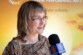 "Je dois admettre que j'ai pleuré et que je ne pouvais pas retenir mes larmes. La Danse tibétaine et celle au sujet de la persécution du Falun Gong, les deux m'ont frappée émotionnellement," a-t-elle dit, se référant aux programmes de danse: "Danse sur les Montagnes Enneigées" et "Persécuté sur un chemin sacré."