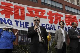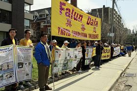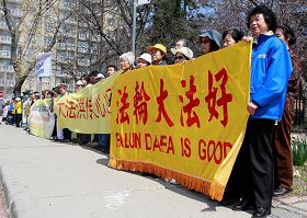 À midi le 24 avril 2009, des centaines de pratiquants de Falun Gong à Toronto au Canada et leurs défenseurs se sont rassemblés devant le consulat de Chine pour commémorer l’appel du « 25 avril » d’il y a dix ans, lorsque plus de dix mille pratiquants de Falun Gong ont pacifiquement fait appel au gouvernement chinois pour un environnement sans restriction dans lequel on pouvait faire la pratique du Falun Gong. M. Consiglio DiNino, député canadien, Michael Craig, président des droits de l'homme de Chine, et coordinateur d’Amnesty International, ainsi que l'avocat Joel Etienne ont participé au rassemblement.