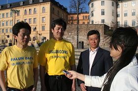 Voici dix ans que dix mille pratiquants de Falun Gong ont fait pacifiquement appel le 25 avril 1999. Les pratiquants de Suède ont tenu des activités les 24 et 25 avril devant l’Ambassade et le consulat chinois afin de commémorer l’évènement et demander la fin de dix ans de brutale persécution. On pouvait lire sur les banderoles déployées le 25 avril devant l’ambassade "Dixième anniversaire de l'appel pacifique du Falun Gong le 25 avril," "Liberté de croyance," et "Stop à la persécution du Falun Gong." Une pratique des exerces a également eu lieu face à l'Ambassade de Chine en guise de protestation pacifique et d'appel à la communauté internationale d'aider à mettre fin à la persécution.