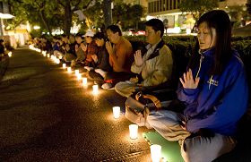 Pour marquer le dixième anniversaire de l'appel pacifique du '25 avril' lorsque plus de dix mille pratiquants de Falun Gong sont allés faire appel à Zhongnanhai (siège du comité central du Parti communiste chinois), pratiquants et sympathisants de Los Angeles ont tenu une veillée aux chandelles devant le Consulat chinois, en hommage aux pratiquants morts suite à une torture inhumaine, et révélé les crimes commis par le PCC.