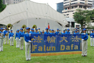 La Fanfare Tian Guo de Singapour, les pratiquants de Falun Gong locaux y compris, a joué de nombreux morceaux. Un groupe de pratiquants a fait la démonstration des cinq séries d'exercices au son d'une musique sereine. Des panneaux d'information installés sur le chemin menant au Parc rendaient compte de la vaste propagation de Falun Dafa dans le monde et de la persécution du Falun Gong par le PCC Beaucoup de gens qui passaient se sont arrêtés et informés.