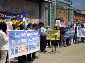 Après le rassemblement, les participants ont marché dans le Chinatown. De nombreux passants ont applaudi le défilé ou agité la main en direction du défilé. Le long du trajet, beaucoup de Chinois se sont arrêtés pour regarder. Tous étaient amicaux et acceptaient volontiers l’information à propos de Quitter le PCC.