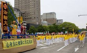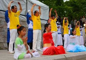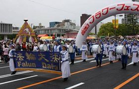 Le 33e Festival des Fleurs de Hiroshima a eu lieu du 3 au 5 mai. Pour la huitième fois, les pratiquants du Falun Gong ont été invités par les organisateurs à se produire lors du festival.