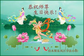 Les pratiquants d’un groupe d’étude de la Loi de Jiadong de la ville de Jiamusi souhaitent respectueusement au grand et vénérable Maître un Joyeux anniversaire!
