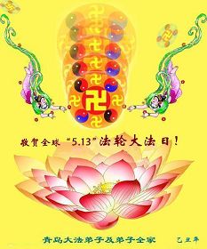 Une famille de trois d’un pratiquant de la province de Zhejiang souhaite respectueusement au grand et bienveillant Maître un Joyeux anniversaire! Célébrez la Journée mondiale de Falun Dafa!