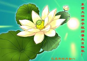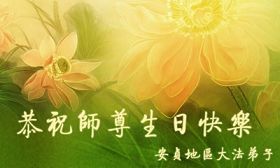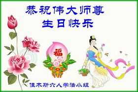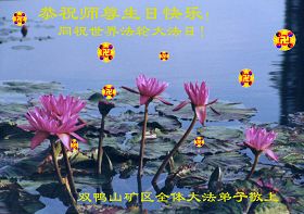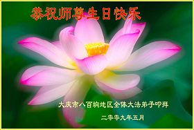 Les pratiquants du secteur des mines de Shuangyashan, province du Heilongjiang souhaitent respectueusement au vénérable Maître un Joyeux anniversaire!