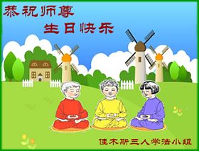 Les pratiquants d’un groupe d’étude de trois personnes à Jiamusi souhaitent respectueusement au grand et vénérable Maître un Joyeux anniversaire!