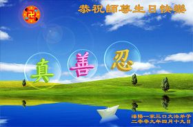 Les pratiquants d’un groupe de clarification de la vérité de la ville de Shulan souhaitent respectueusement au vénérable Maître un Joyeux anniversaire!