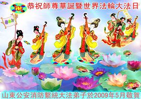 Les pratiquants du Système de sécurité publique de lutte contre les incendies de la Province du Shandong souhaitent respectueusement un bon anniversaire au Maître ! Ils fêtent la Journée mondiale du Falun Dafa !