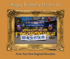 Les pratiquants de Falun Dafa de la région de la Nouvelle-Angleterre souhaitent un bon anniversaire au vénérable Maître !
